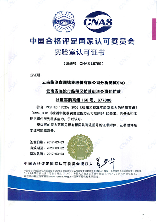 CNAS認(rèn)可證書(shū)(中文)